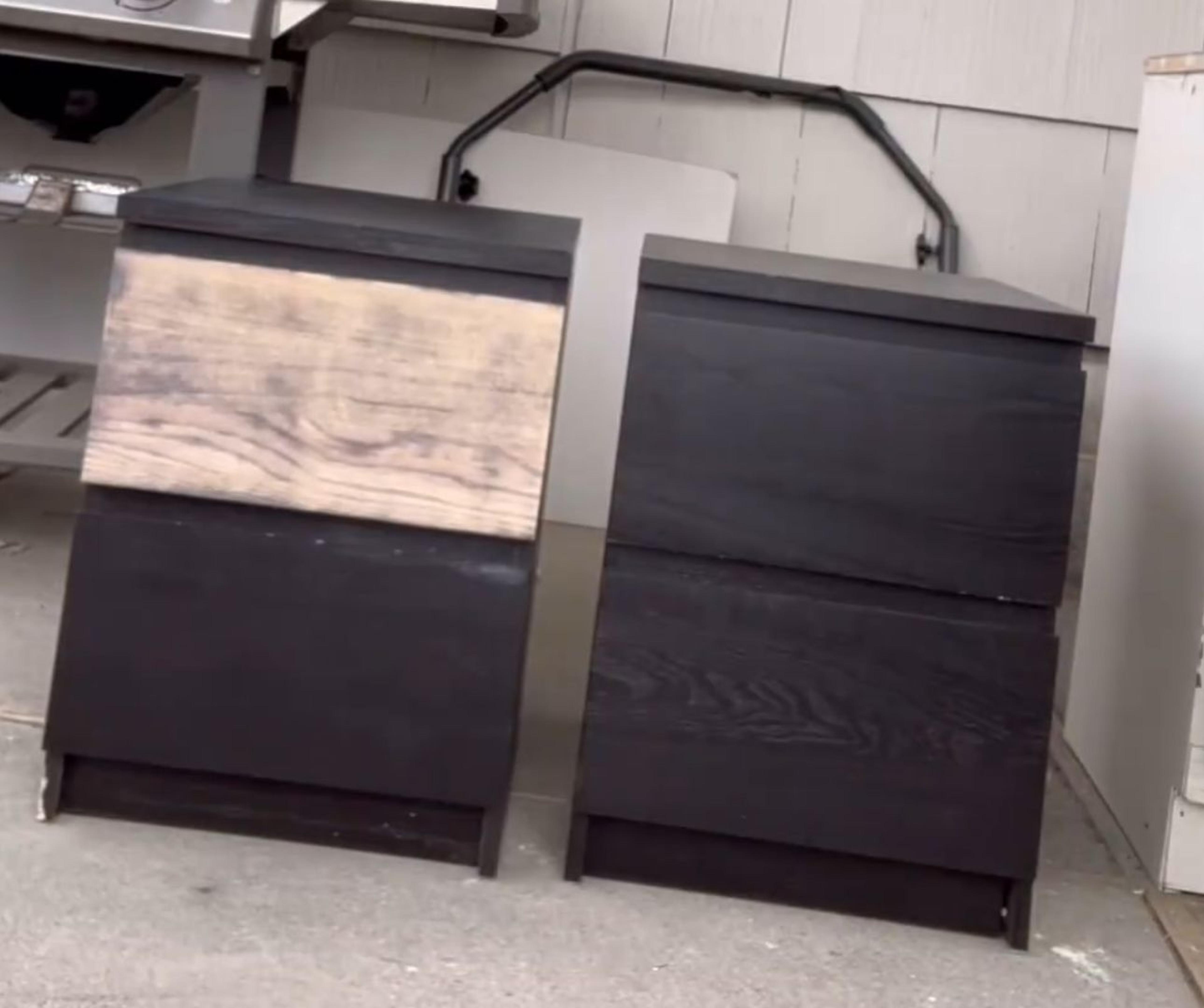 Pak een stukje schuurpapier of een schuurmachine en onthul het natuurlijke houtfineer onder de zwarte verflaag van de laden van je MALM nachtkastjes. Begin voorzichtig met schuren en bouw langzaam op tot de gewenste onthulling van het houtfineer. Deze stap zorgt voor een prachtige en unieke uitstraling van je kastjes.