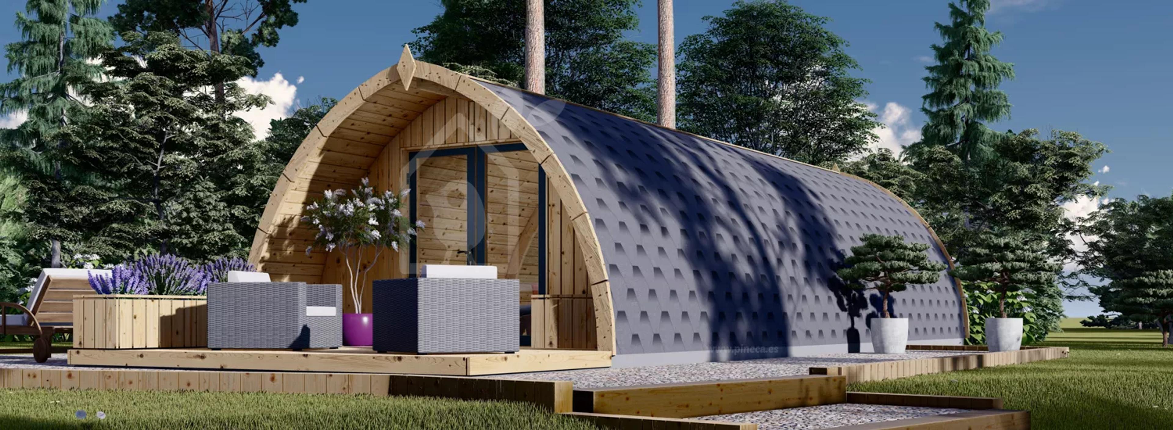 Dit is eigenlijk geen tuinhuis meer te noemen en deze camping pod is gemaakt voor bewoning. Dankzij de lange opzet van 4 x 10 meter is het makkelijk om de pod in te delen naar je eigen woonwensen. Door de woonkamer aan de voorkamer te plaatsen creëer je een gevoel van ruimte, dankzij de grote glazen deuren. Het terras met een gedeeltelijke overkapping zorgt voor een lekker schaduwplekje om te zitten. Er is zelfs al rekening gehouden met een aparte ruimte voor de badkamer, in deze zeer betaalbare houten tuinhuis woning. Bezoek deze website voor meer informatie over deze tuinhuizen.