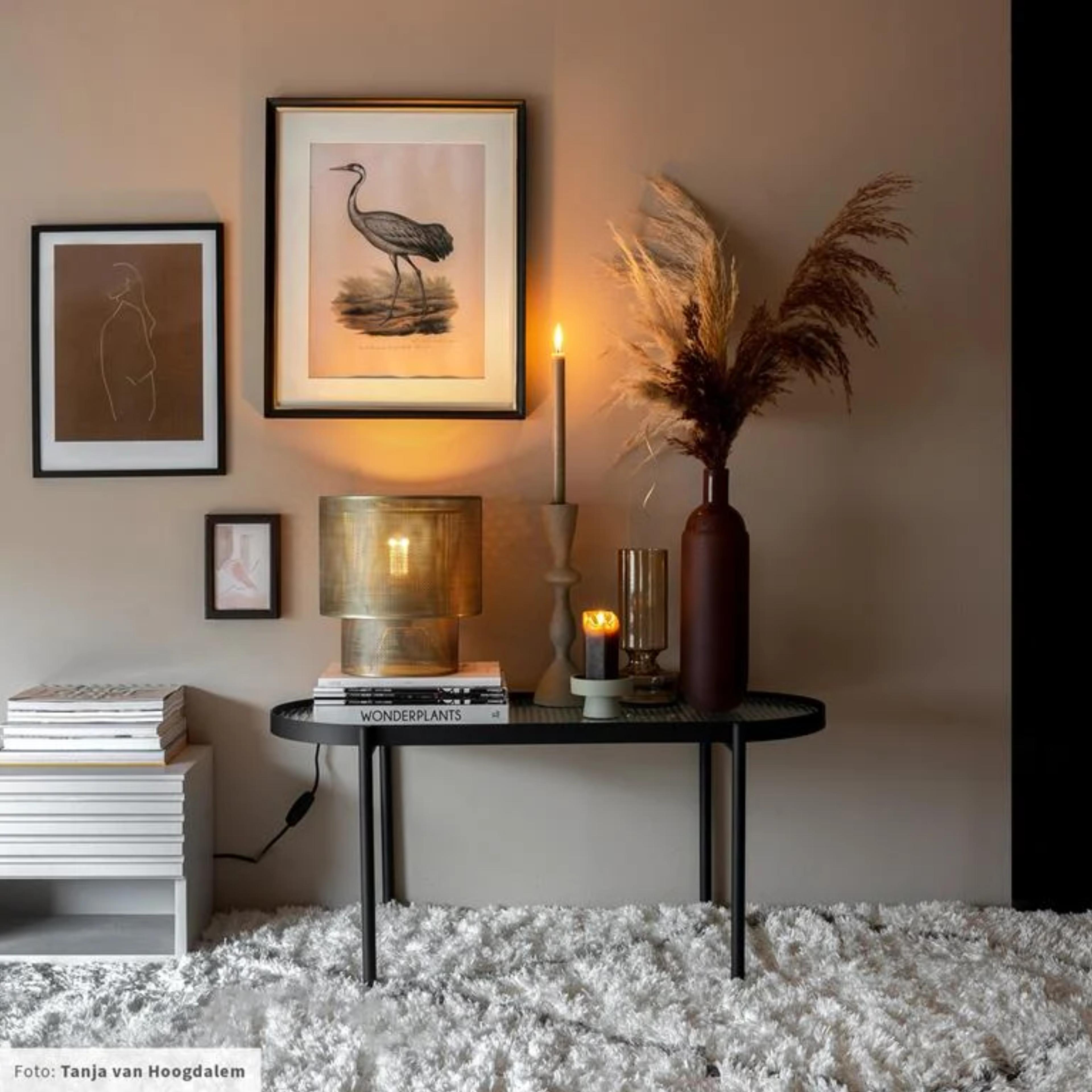 Trek de industriële stijl door naar de vensterbank. Een industriële vensterbank vraagt om strakke en robuuste items. Zo raad ik je deze zwarte vaas aan. De stoere look van de vaas zorgt voor gezelligheid en warmte. Daarnaast kun je net als het voorbeeld een paar takken pampasgras in doen om de leegte op te vullen.