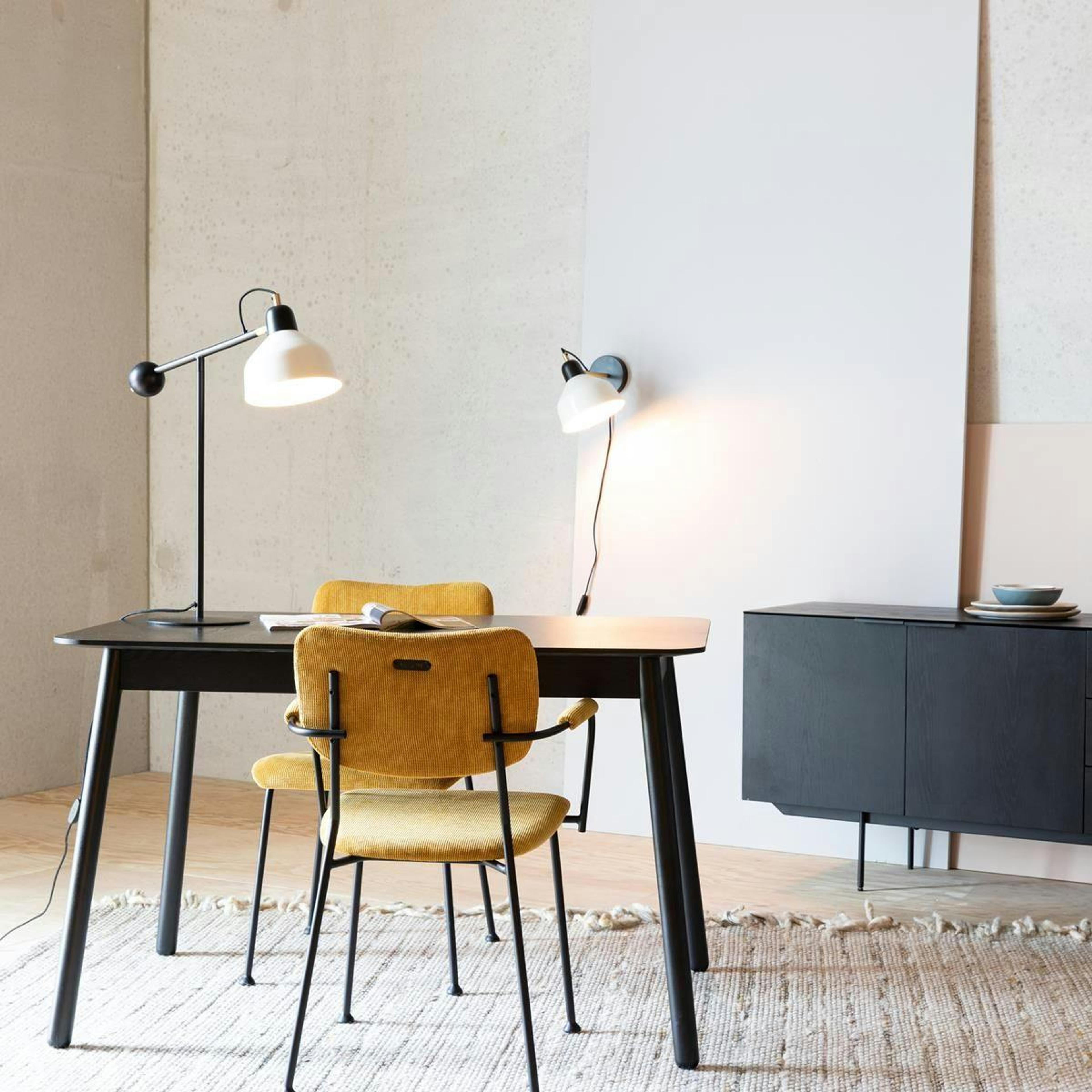 In een rustige ruimte, zoals een kantoor, mag je soms best wat kleur toevoegen. Dat het goed uitpakt bewijst dit bureau met twee okergele stoelen. Ze zorgen voor afwisseling in een ruimte die voornamelijk wit en grijs is. De kleur zorgt voor vrolijkheid en net dat beetje meer sfeer. En dankzij de twee lampjes geniet je van een fijn hoekje om te werken of te lezen!