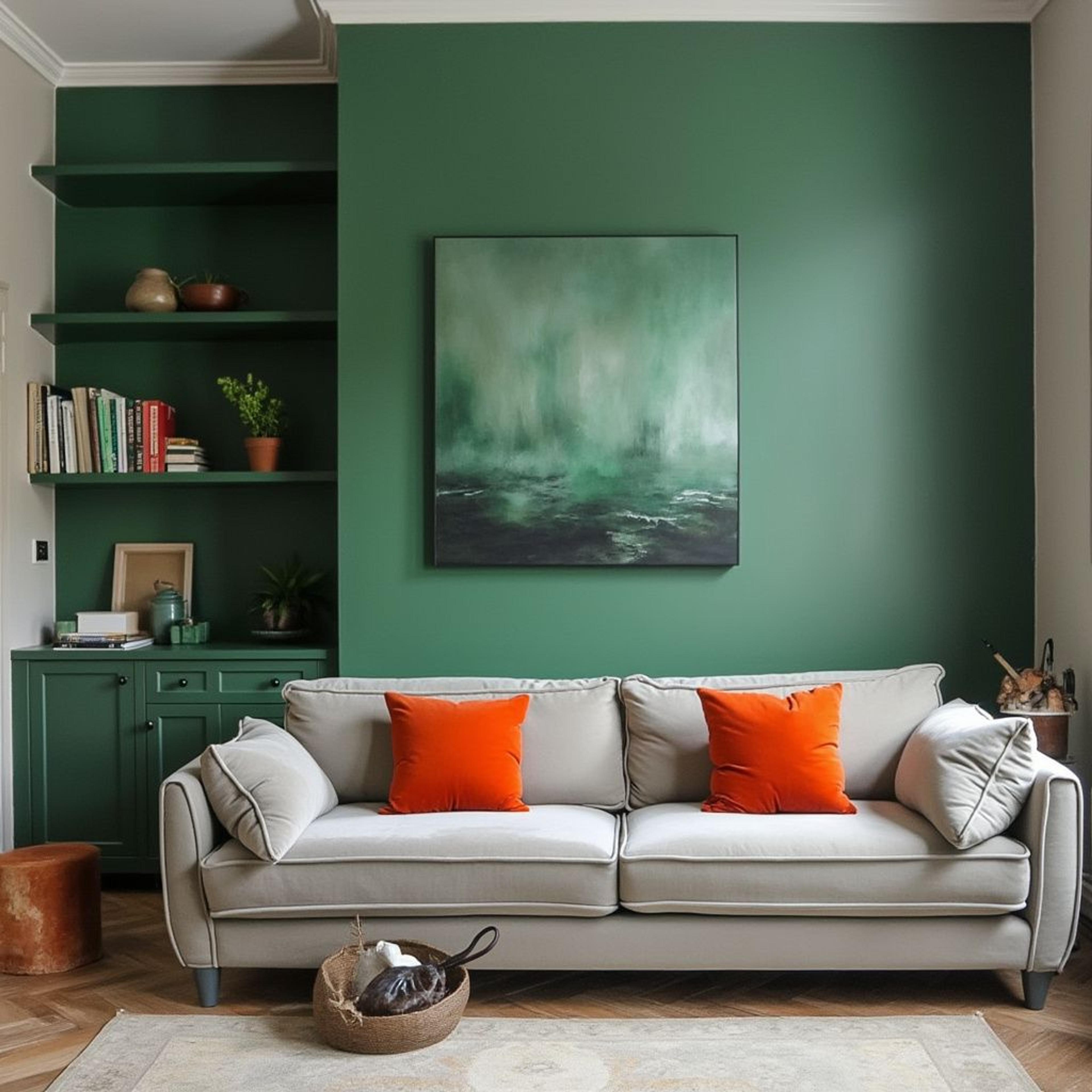 Mosgroen leent zich voor neutrale, gedurfde en metallic combinaties. In deze gids heb ik ervoor gekozen om het te combineren met verbrand terracotta, met de bedoeling om een warm, natuurlijk, maar verfijnd contrast te creëren.